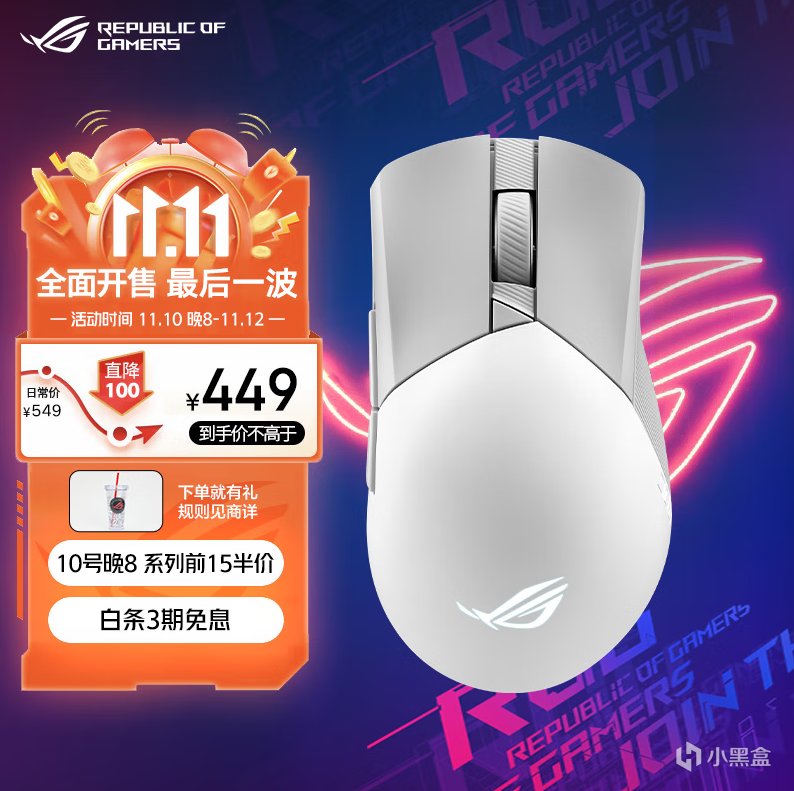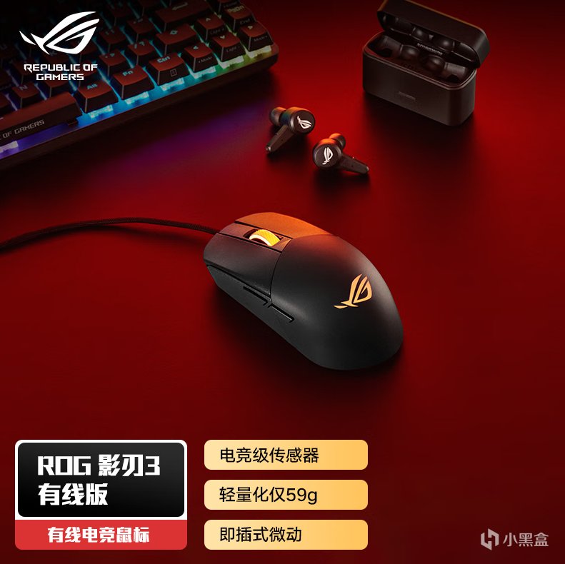 鼠標重量僅有59g,超軟傘繩線,支持ROG神光同步,支持熱插拔微動,方便玩家更換微動。