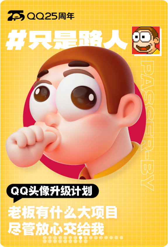 腾讯发布“QQ 经典头像升级计划”,在 QQ 25 周年到来之际,将经典的像素风 QQ 头像升级为 3D 版。
