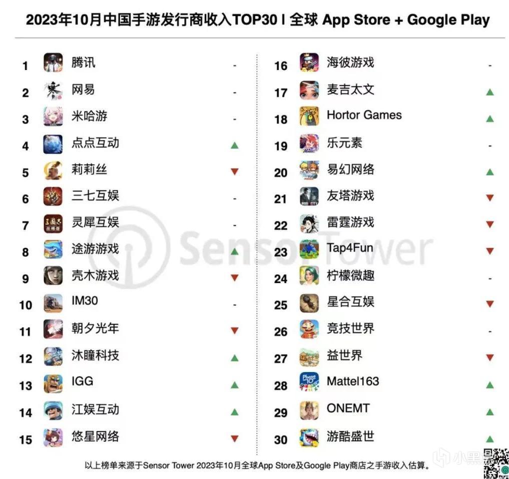 2、近日,據Sensor Tower數據統計,2023年10月共37箇中國廠商入圍全球手遊發行商收入榜TOP100,合計吸金19.1億美元,佔本期全球TOP100手遊發行商收入38.7%。