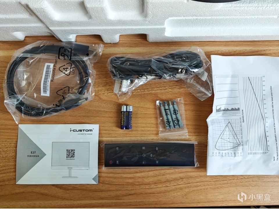 看看附件,電源線、DP線、說明書、遙控器、遙控器電池、壁掛轉換螺絲、單獨的出廠校色報告。i-custom元創師和泰坦軍團、聯合創新是同一集團旗下的三個品牌,以每臺顯示器都有自己的單獨出廠測試報告著稱,顯示對自己品牌產品的自信,也讓消費者更加放心。