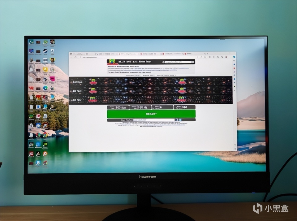 首先,這是款高刷新率顯示器,進入到屏幕刷新率測試網站,我們看這款顯示器的確是160Hz高刷新率。通過上面的動態UFO,可以看到,不同刷新率的實際顯示效果,高刷新率時可以更早的發現物體的動作,低刷新率就會有跳躍的現象。在遊戲裏,就是可以及時發現對手的動向,佔得先機。