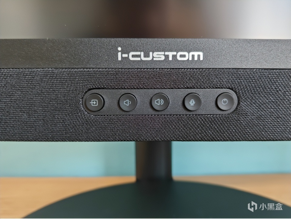 屏幕的正前方下面是五個按鈕,分別是視頻源選擇、音量-、音量+、麥克風啓用/關閉、電源鍵。