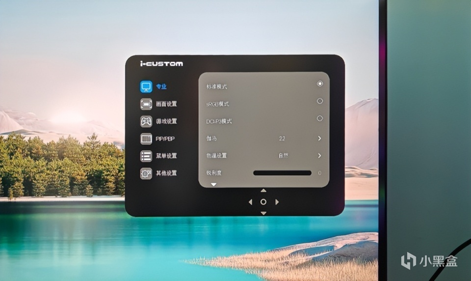 屏幕有多級菜單可以設置各種參數,我們看選擇豐富,即可以使用標準模式,也可以選擇sRGB模式或者DCI-P3模式,更可以調節伽馬、色溫、銳利度等參數。