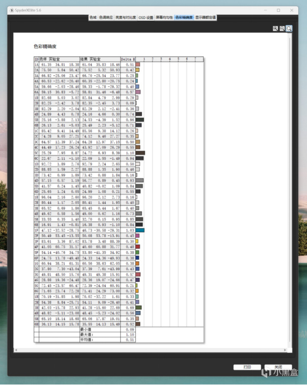 色彩精準度,精準到0.51,這個數值,小於1就是屬於專業顯示器的水準了,前面候選池裏的很多顯示器都宣稱小於2。