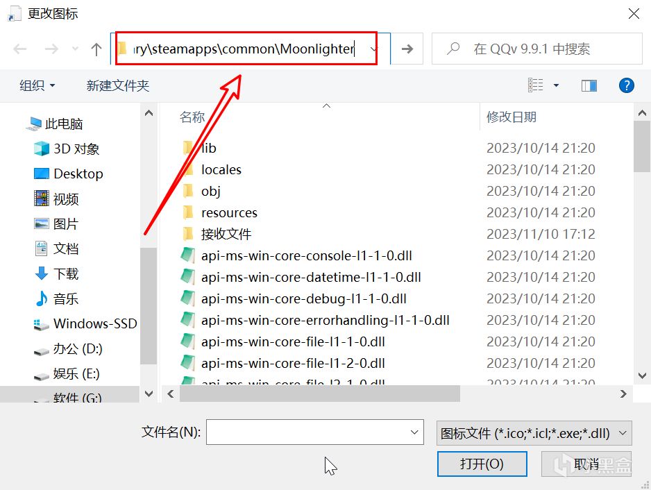 3、点击方法一中更改图标界面的“预览”,将复制的地址输入到上方,回车,选择相应的图标即可
