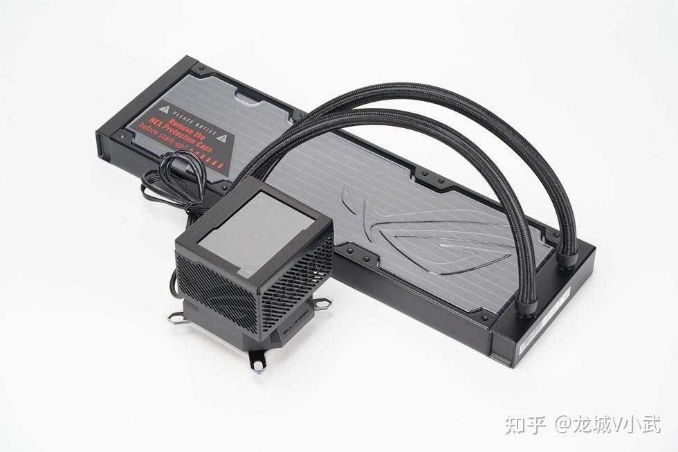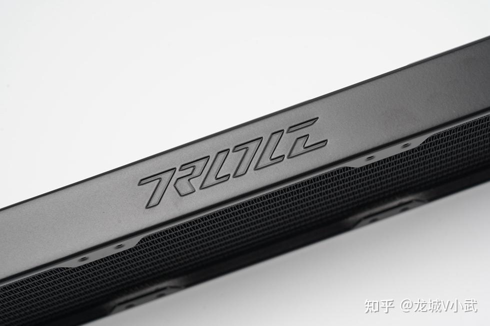 位於冷排的側面中部還陰刻有斜紋的 ROG 文飾 LOGO。