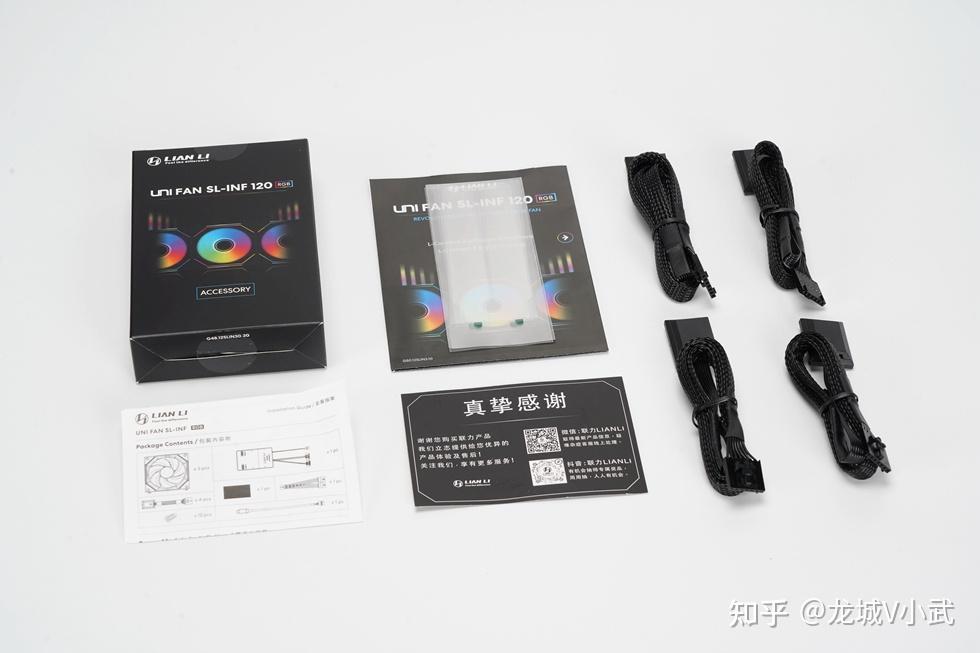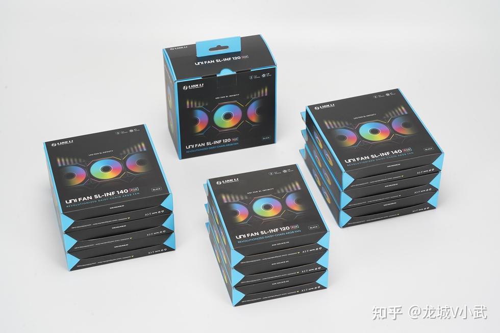 機箱風扇使用的是聯力積木風扇3代,外包裝黑藍配色輔以風扇燈效圖案。