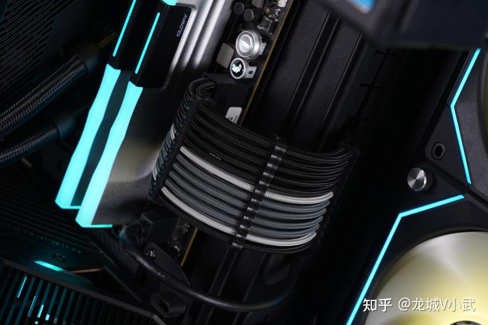定製模組線還是來自 Formula Mod 蛇皮網包線,線材質量採用柔軟的硅膠線包了黑灰配色的蛇皮網,外加高質量的JMT外殼和鍍金端子,尺寸方面的也有現成的方案提供給我,合作了多年相互之間交流簡單很有默契,線束3D套管線束。定製線數據:主板24PIN供電長度62釐米含端子長度,CPU雙8PIN供電長度85CM含端子長度,顯卡12VHPWR供電長度60CM含端子長度。