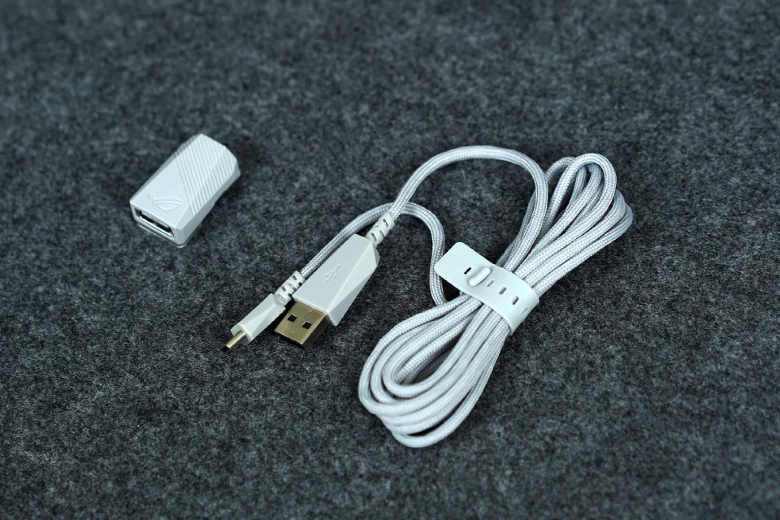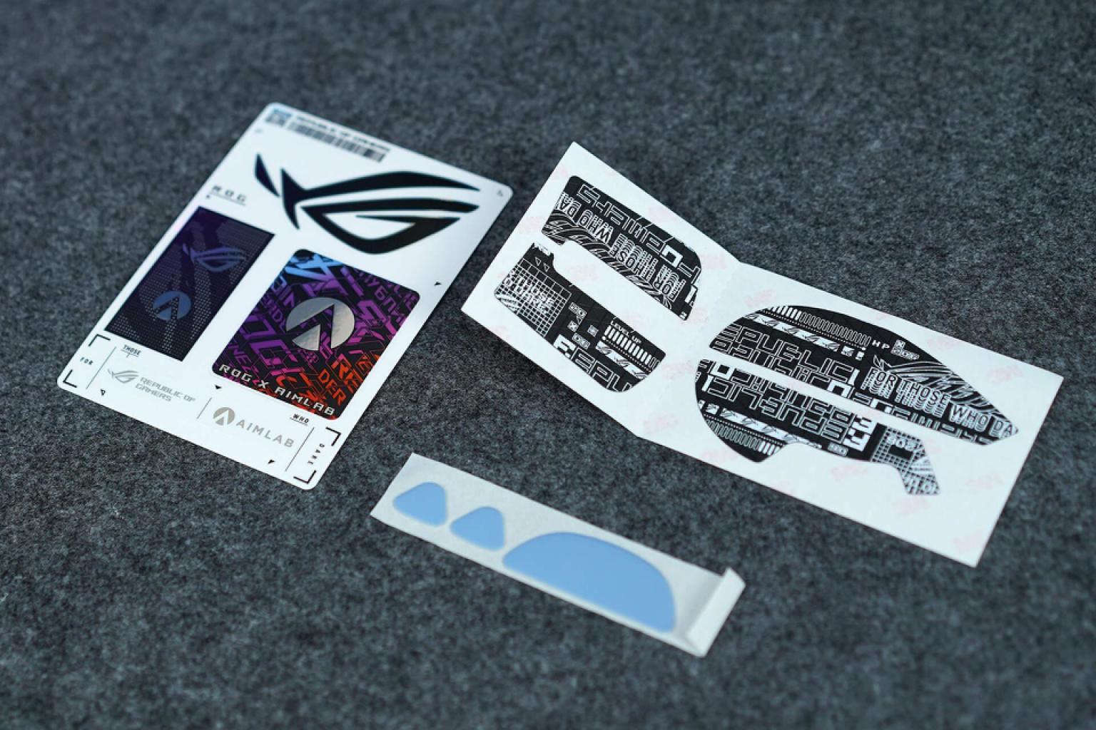 ROG龙鳞ACE的配件相当丰富,有:ROG 伞绳线,ROG 延长器、脚贴组合*3、ROG 防滑贴组合*4、感谢卡、ROG x Aim Lab 贴纸组合、用户手册、保卡等。