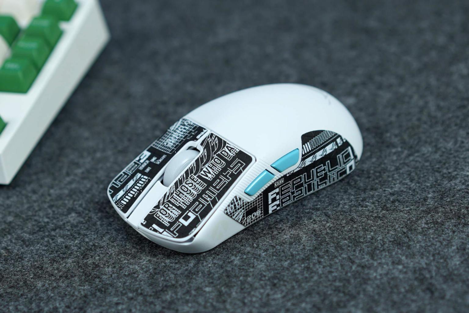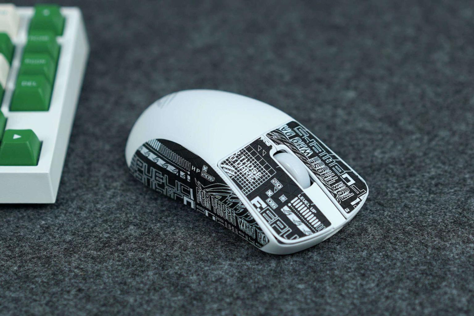 没错,我想把ROG防滑贴拿出来单独写一段,因为我实在太喜欢了。防滑贴上满满都是和ROG相关的涂鸦,让黑白两个颜色的ROG龙鳞ACE变得更时尚、更有冲击感。它还能增加接触面的摩擦力,趴鼠和抓鼠两种握持姿势都能很稳固。