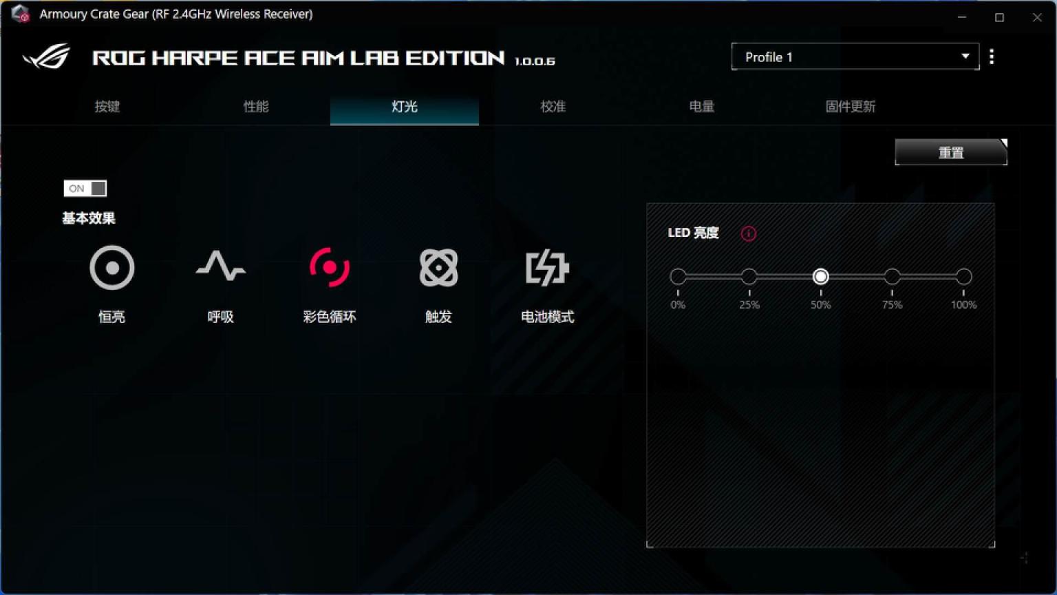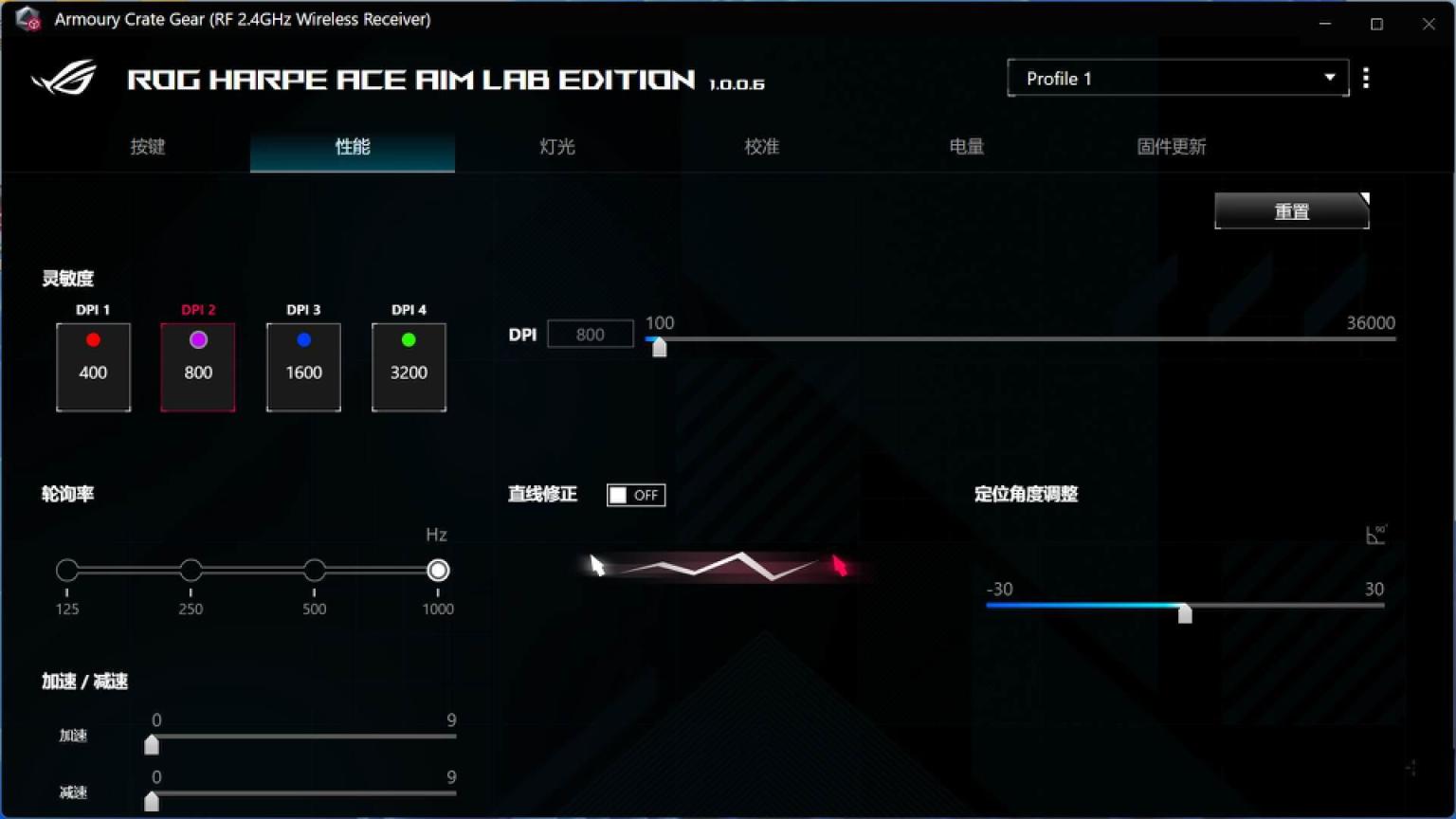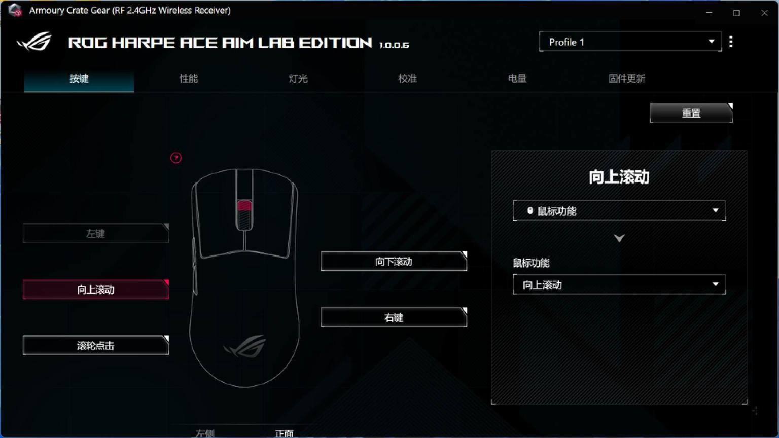 在奥创软件中可以自定义按键功能、调整鼠标的DPI/回报率/角度修正等参数、灯光效果等,设置之后可以保存设置在不同的板载配置文件中。