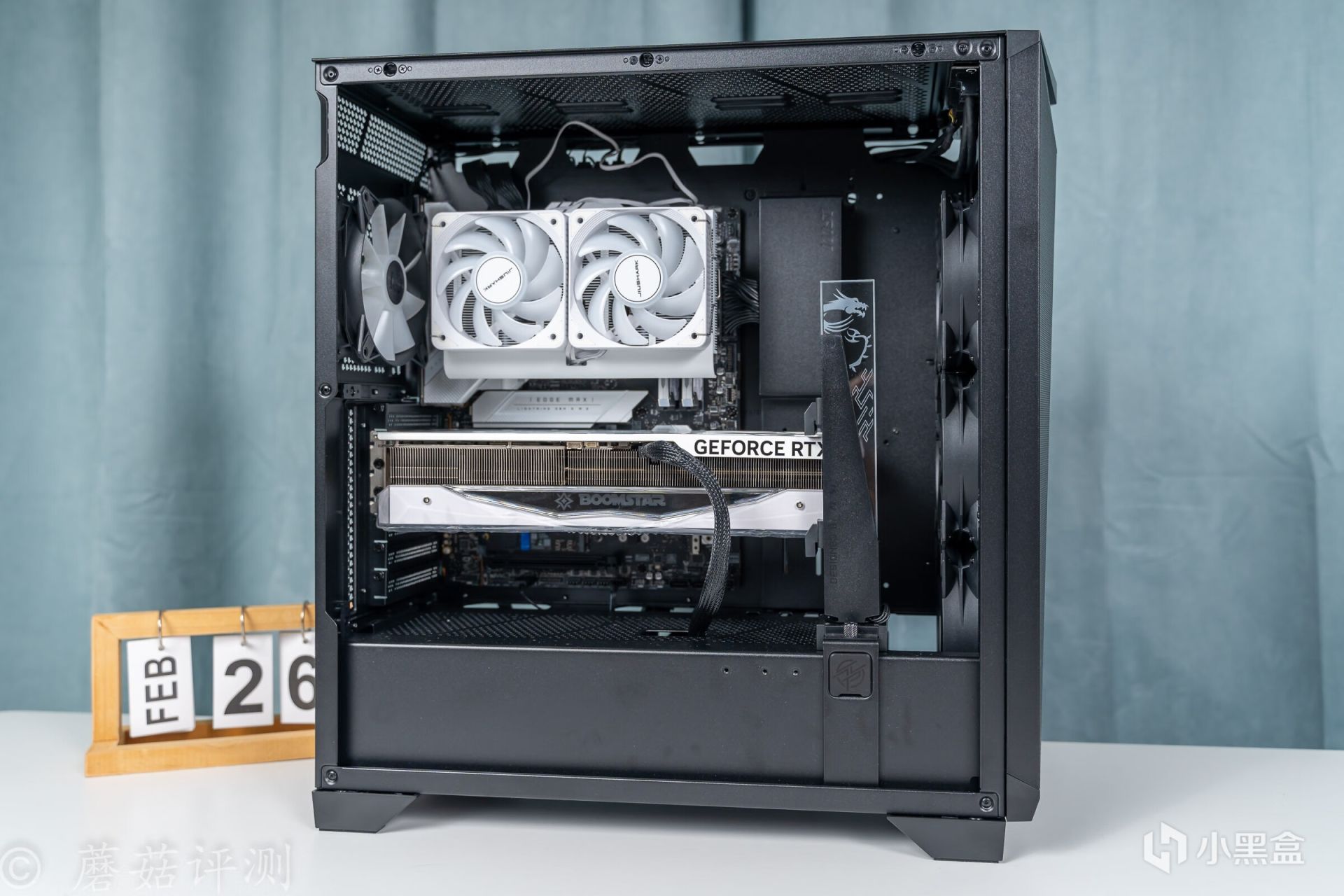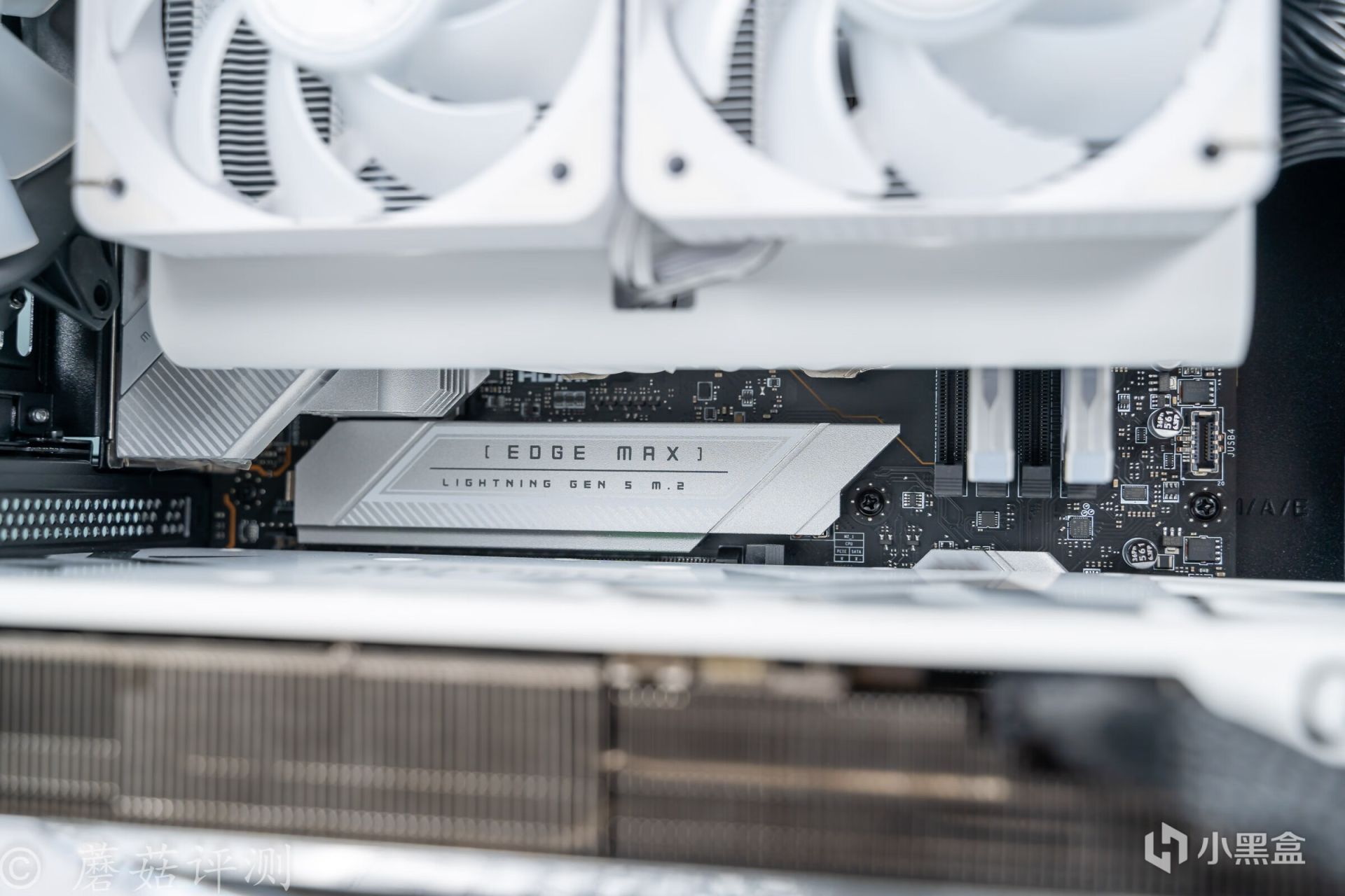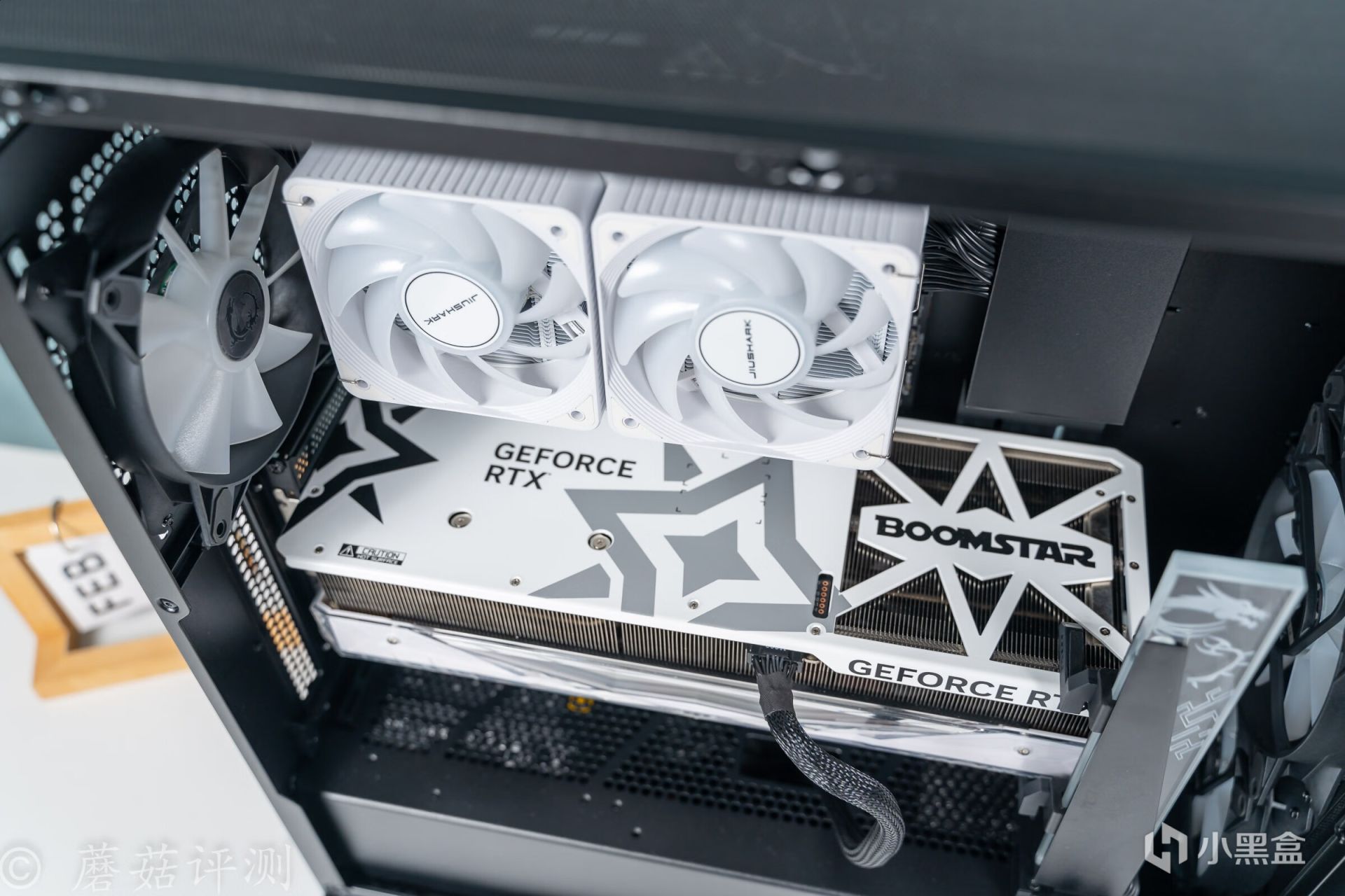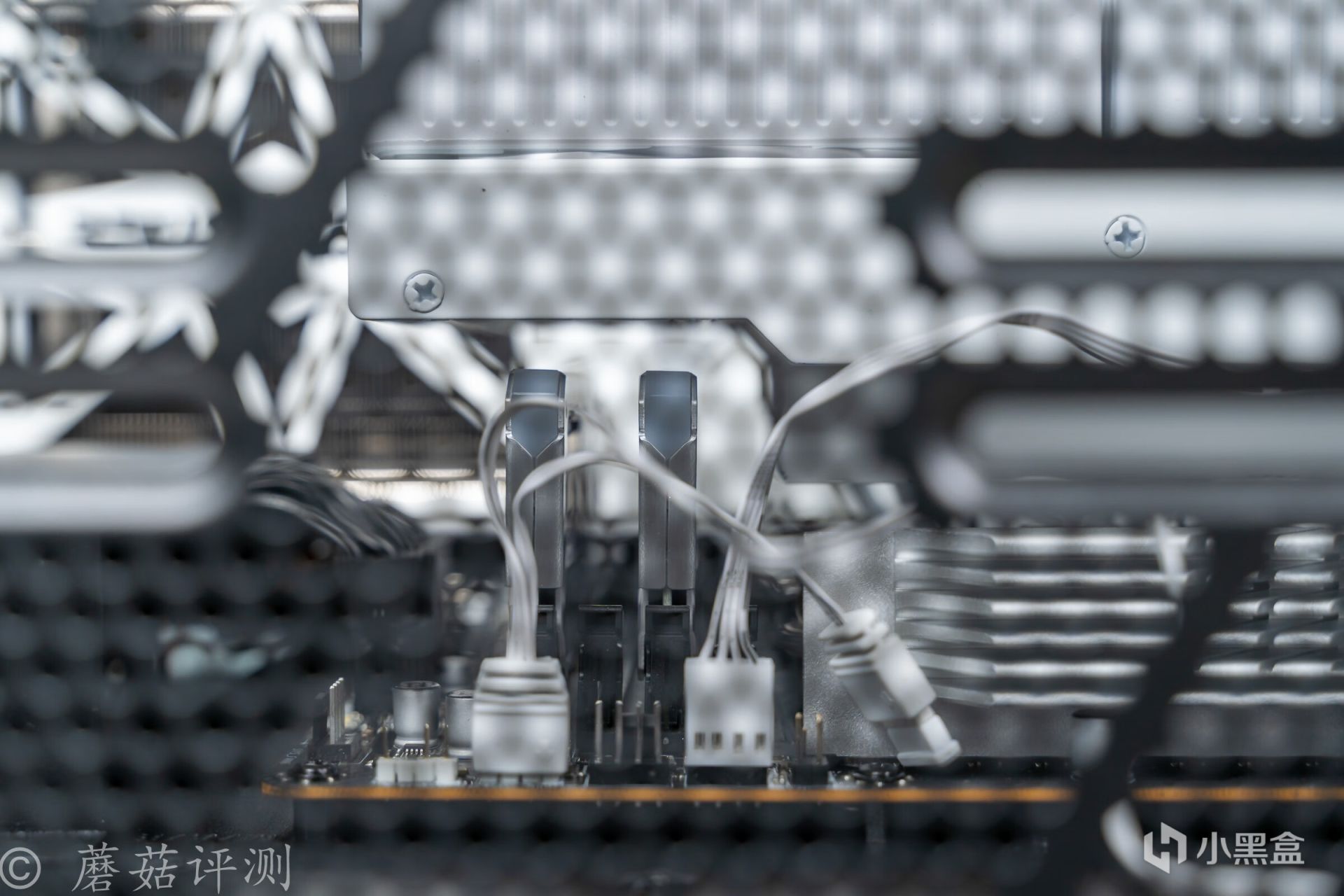 ▼散热器的两把散热风扇颜值很漂亮,乳白色的扇叶柔光效果很不错,颜色过渡很均匀。