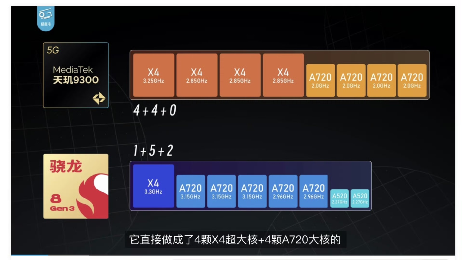 天璣9300 + LPDDR5T + UFS 4.0,室溫下綜合跑分成績約 225 萬,作爲對比,目前唯一的驍龍8 Gen3 旗艦手機小米 14 系列跑分是 200 萬。除了天璣9300 之外,vivo X100 還首發搭載海力士LPDDR5T 規格的運行內存,相比較以往的 LPDDR 5X 性能提升 13%。