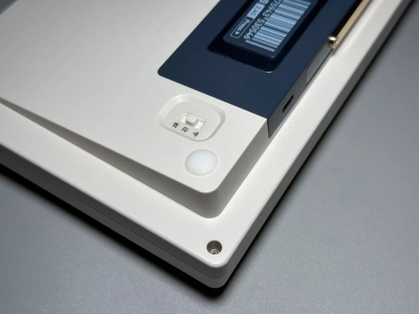 S99也是在背部进行了开槽处理,给大家提供了一个磁吸收纳仓。而且这磁吸收纳仓不是直接裸露在外,而是设计有一个小铭牌的盖子进行遮蔽。既给用户提供收纳仓的同时又保证了键盘的美观,这点好评。