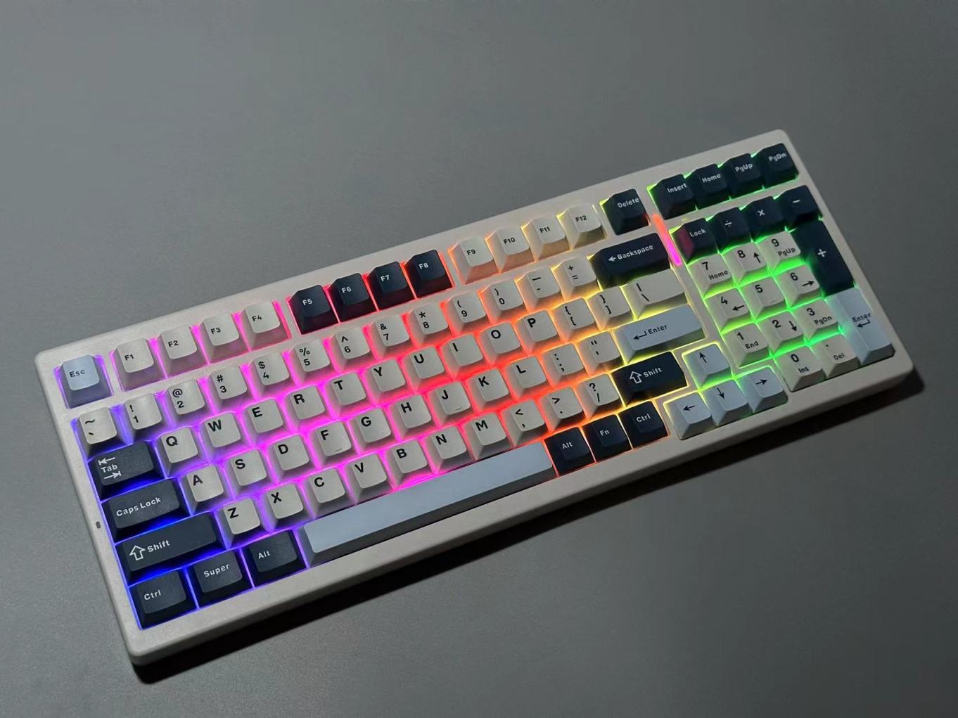 s99的键帽为双色PBT,高度为原厂高度,整把键盘的键帽做工偏中等,可能我中奖了我手上的空格水口处理的不是很好,但是我问了一下其他人,他们又都没问题