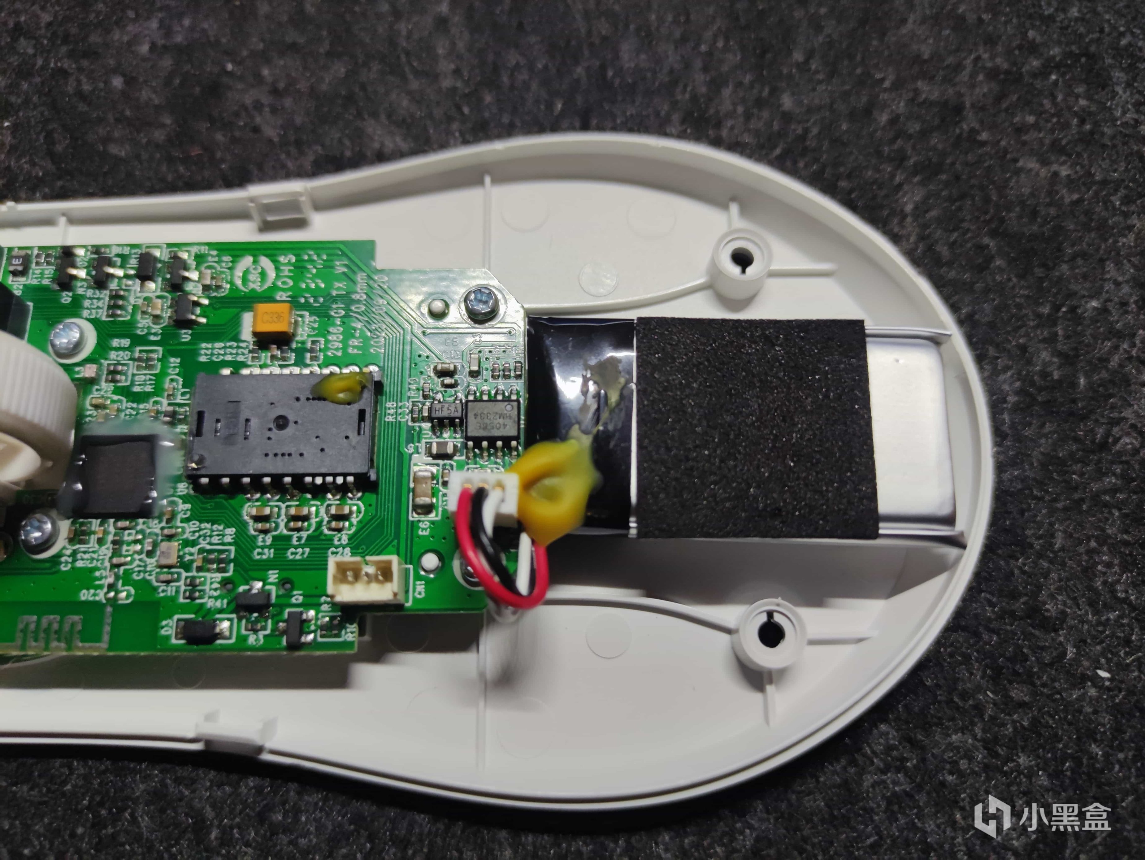 这款鼠标内部的设计说精致,确实精致,独立小板连接微动的设计都给你做出来了,侧键的手感确实有很大的提升,但是电池,主控十分明显的溢胶确实有些影响观感和diy更换电池。