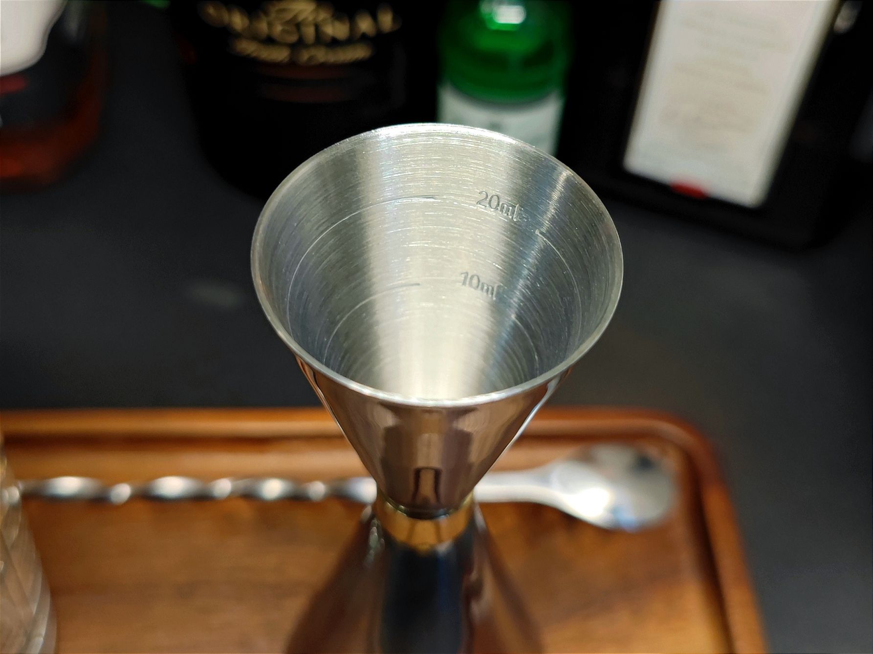 刻度線這點超級重要,開始調酒之後大家會發現調酒的大部分時間由於“材料缺乏需要用其他東西替代”、“想喝的酒精度甜度不同”等等問題,我們調酒時使用的各種成分和成分的量與標準配方會有出入,這並沒有不對,實際上有時對標準配方做點改變出品的酒反而會更對我們的口味;又或是自己想嘗試一下新的搭配,類似這些時刻帶刻度線的量杯對我們就格外的重要,方便我們記錄自己調過的酒(如果沒有記錄,可能喝完一杯超對自己口味的酒之後,下次就再也調不出一樣的味道了)。