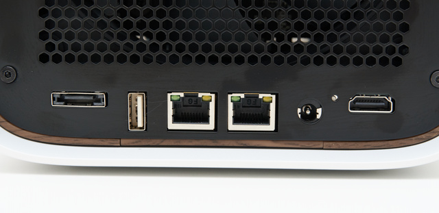 ▲极空间Z4S拥有着两个2.5G有线网口,支持链路聚合功能,另外还拥有一个eSATA接口,可以连接极空间自有品牌的硬盘柜,获取多的硬盘槽与更大的存储空间。