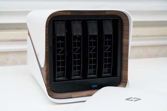 ▲除了4个SATA硬盘位,极空间Z4S还提供了2个PCIe 3.0的M.2固态硬盘位,在系统更新后不仅可以做系统盘与储存空间使用,还可以作为机械硬盘的高速缓存使用,总共6盘位对家用来说也很不错了。