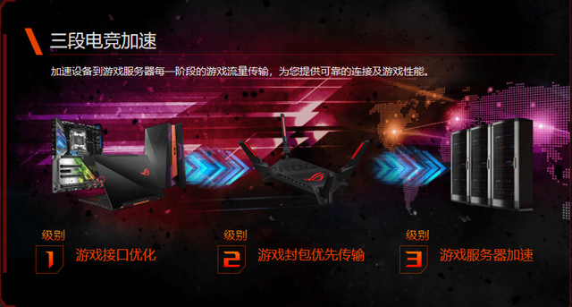 ▲华硕路由器的固件功能非常多,ROG标的路由器更是拥有三段电竞加速功能,其中游戏接口优先功能是ROG标路由器所独有的功能。