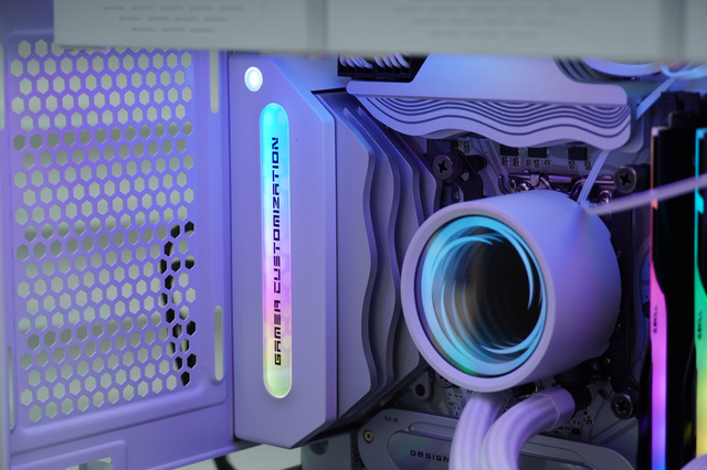 ▲其中,iGAME CUSTOMIZATION与FLOW均有ARGB背光,其上颜色像水流一样缓缓流动变换,十分符合FLOW这个词的含义。(FLOW灯条处基本会被显卡盖住,除非使用水冷显卡才能露出此处灯效)