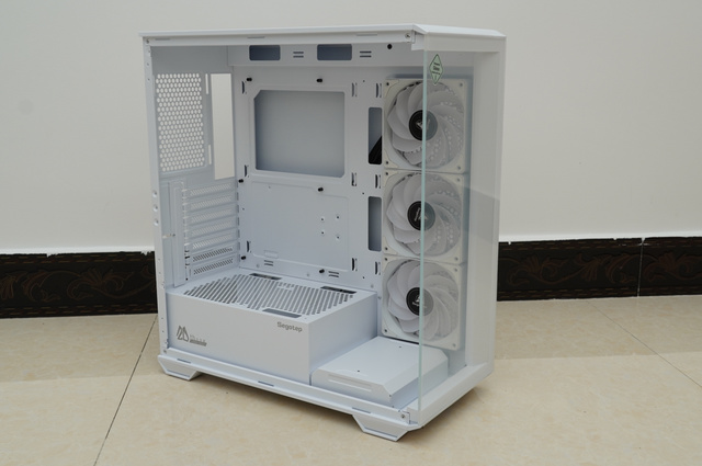 ▲无界1机箱整个机箱均为白色,其正面与左侧均采用了透明材质,十分适合搭建纯白色主题的海景房。