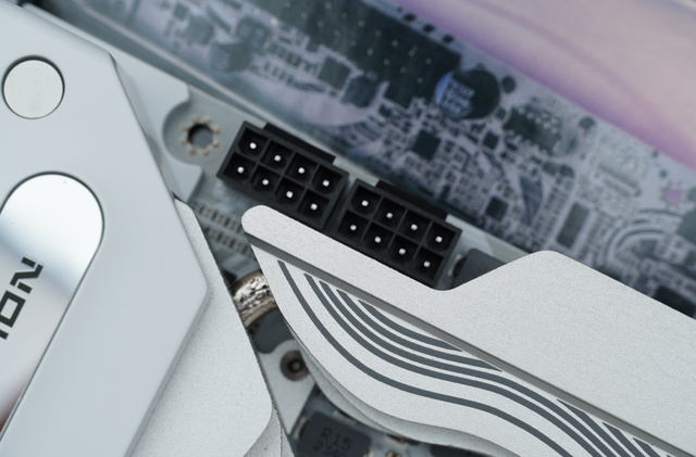 ▲另外主板内还附赠了一块PCIe 4.0 SSD接口的挡板,如果电脑只装一块显卡,则可用这块挡板将两个SSD与显卡接口的散热装甲连为一体,进一步增加主板观感上的整体性。