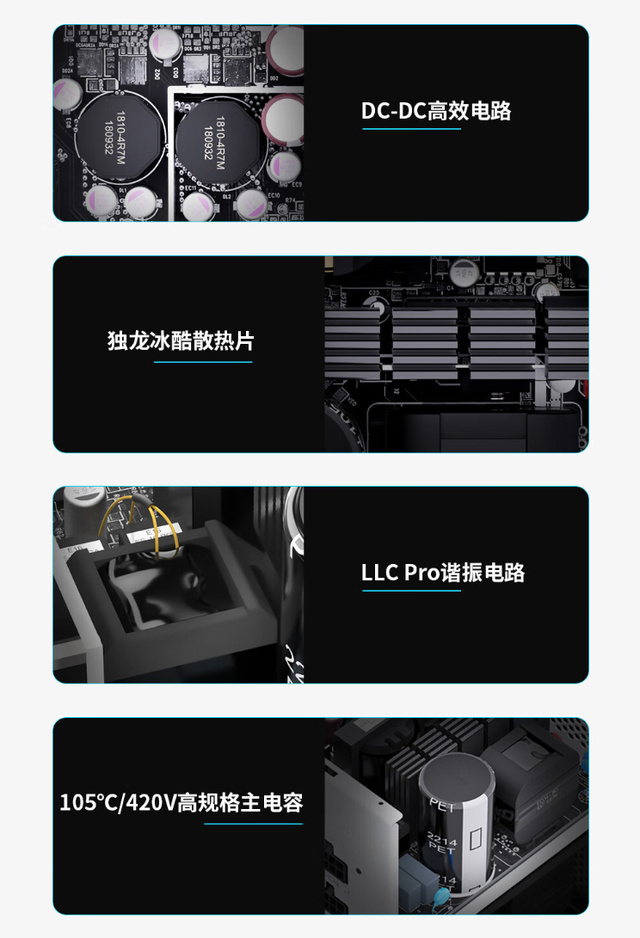 ▲GM850W 冰山版 20周年纪念版金牌全模组电源采用了鑫谷自主研发的LLC Pro+DC-DC准白金架构,其内硬件用料很扎实,并获得了80 Plus金牌认证。