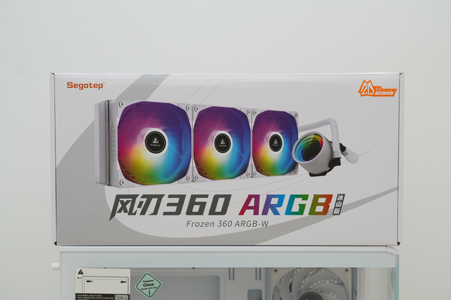 ▲风刃360水冷的3枚12cm风扇已经预装在了360冷排上,大幅降低了安装时的工作量,这款水冷的冷头配备了8极马达与合金轴承,配合着纯铜底座,拥有很高的散热效率。