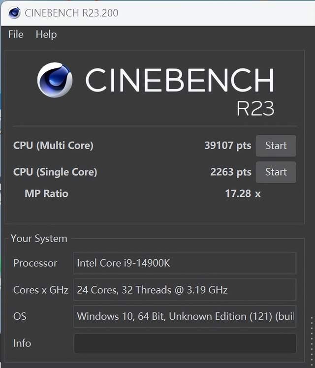 而在实测中,intel i9-14900K的CINEBENCH单核得分2263分,其实1900分以上,都可以视为十分优秀的成绩,相信这样说,大家就可以理解2253这个成绩到底有多高了!而i9-14900K的多核成绩为39107分,这也是非常之高的,甚至超过了AMD目前的旗舰处理器Ryzen 9-7950X。
