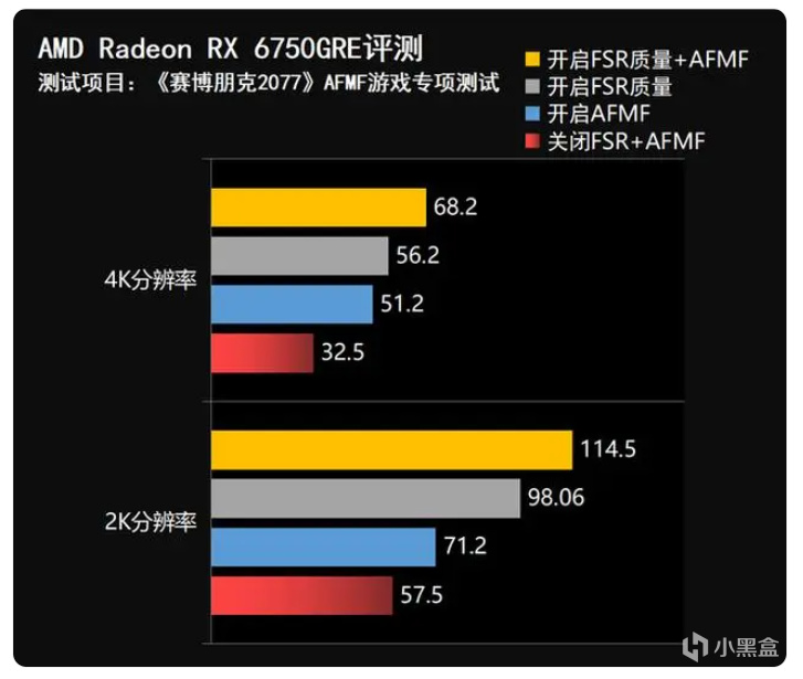 由于这张蓝宝石RX6750 GRE极光版是新出的新品,而且AFMF还在使用测试版的阶段,所以暂时没有支持AFMF的测试版驱动。上图是IT168使用蓝宝石RX6750 GRE极地版的测试结果,用来作为参考,看看效果。可以看到,AFMF启用后的效果,比起FSR还要好一些,而且2者是可以同时启用的,启用后,帧数大大提升。