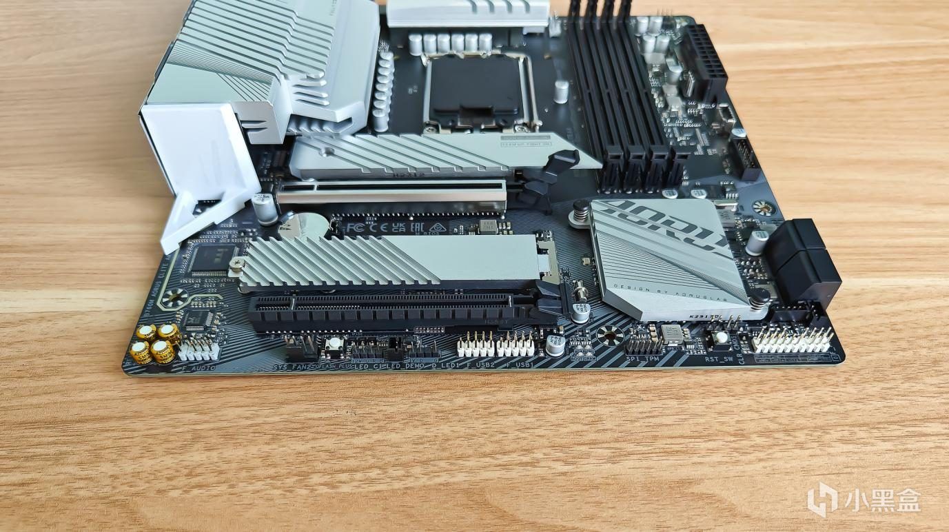 各种接口齐全,风扇接口、ARGB接口,SATA接口等等,都是十分齐全。2根PCIe x16插槽,第一根带有金属护甲设计,同时有显卡快拆设计,使用方便。M.2插槽带有散热装甲,免工具拆装设计。