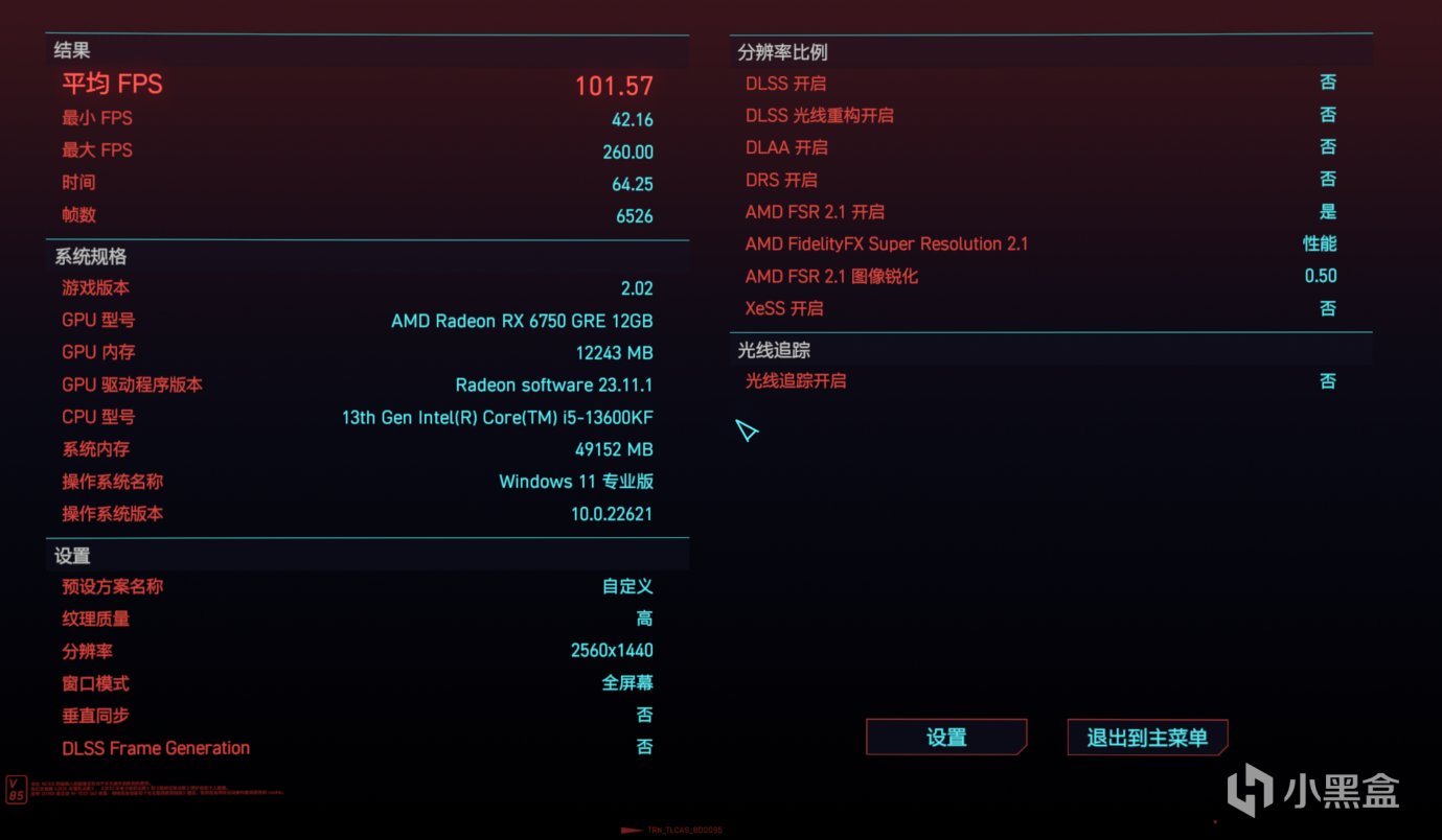 开启FRS 2.1性能模式后,平均帧数是101.57,增长很多。