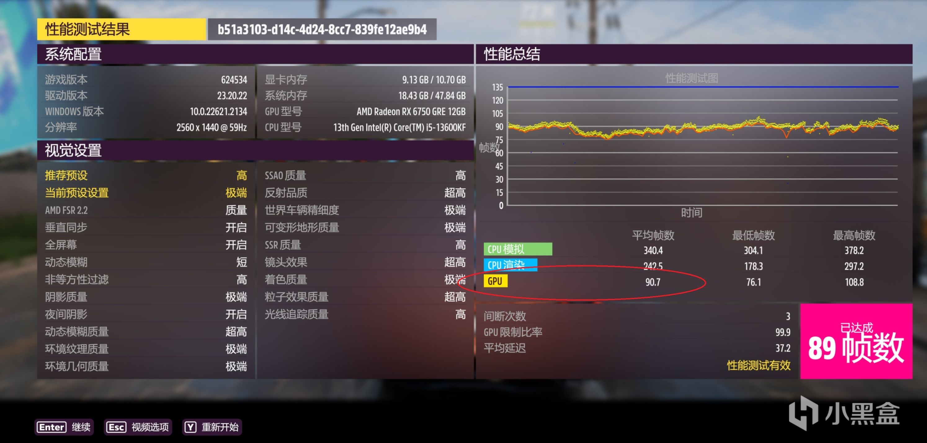 然后开启FSR 2.2质量模式,GPU帧数是平均90.7帧。