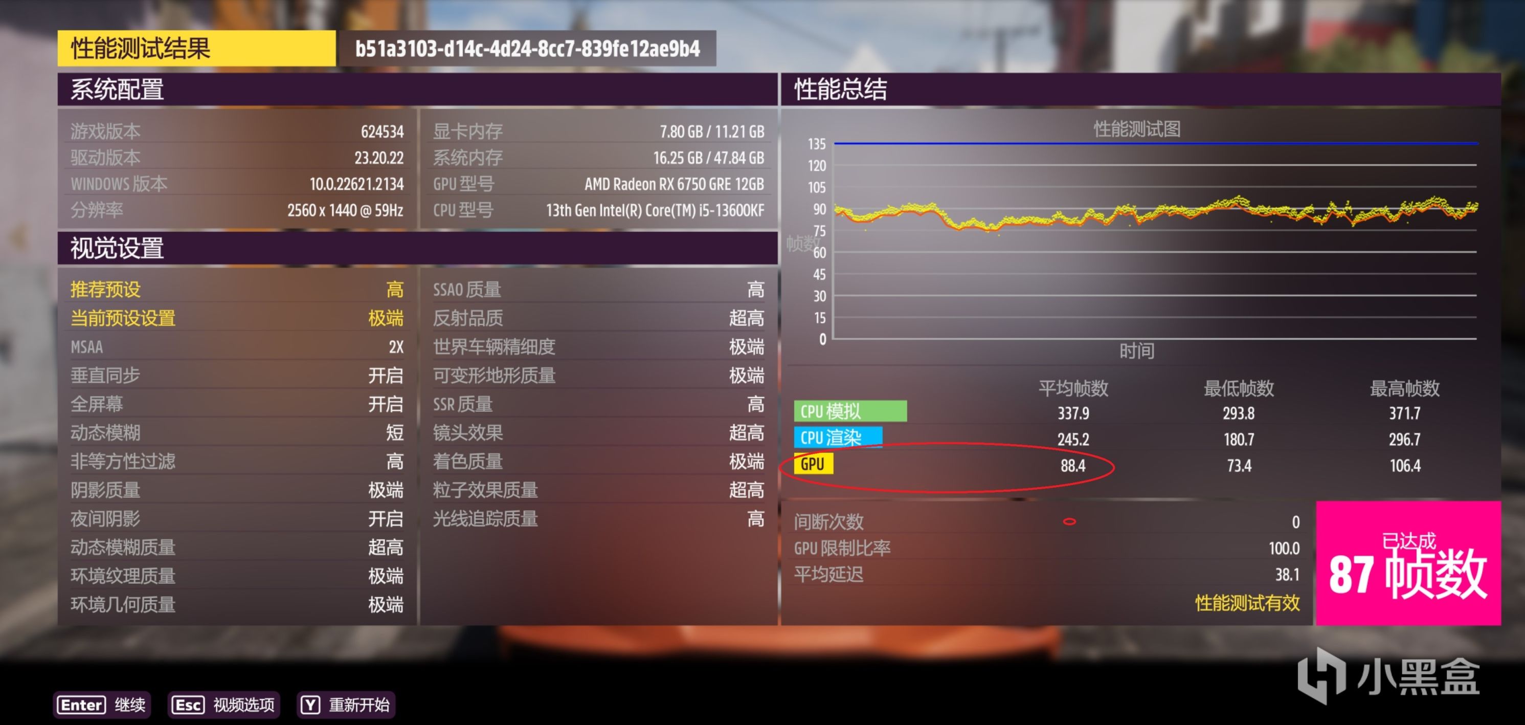 首先是在关闭FSR的情况下,GPU平均帧数是88.4分。