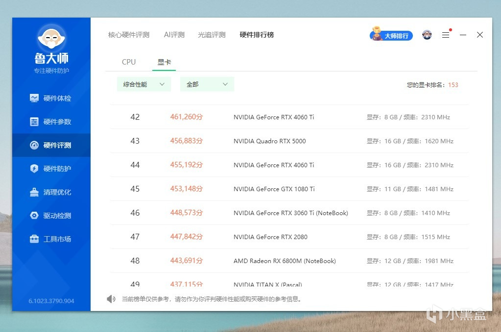 我喜欢鲁大师,鲁大师跑分个,显卡分数541,373分。