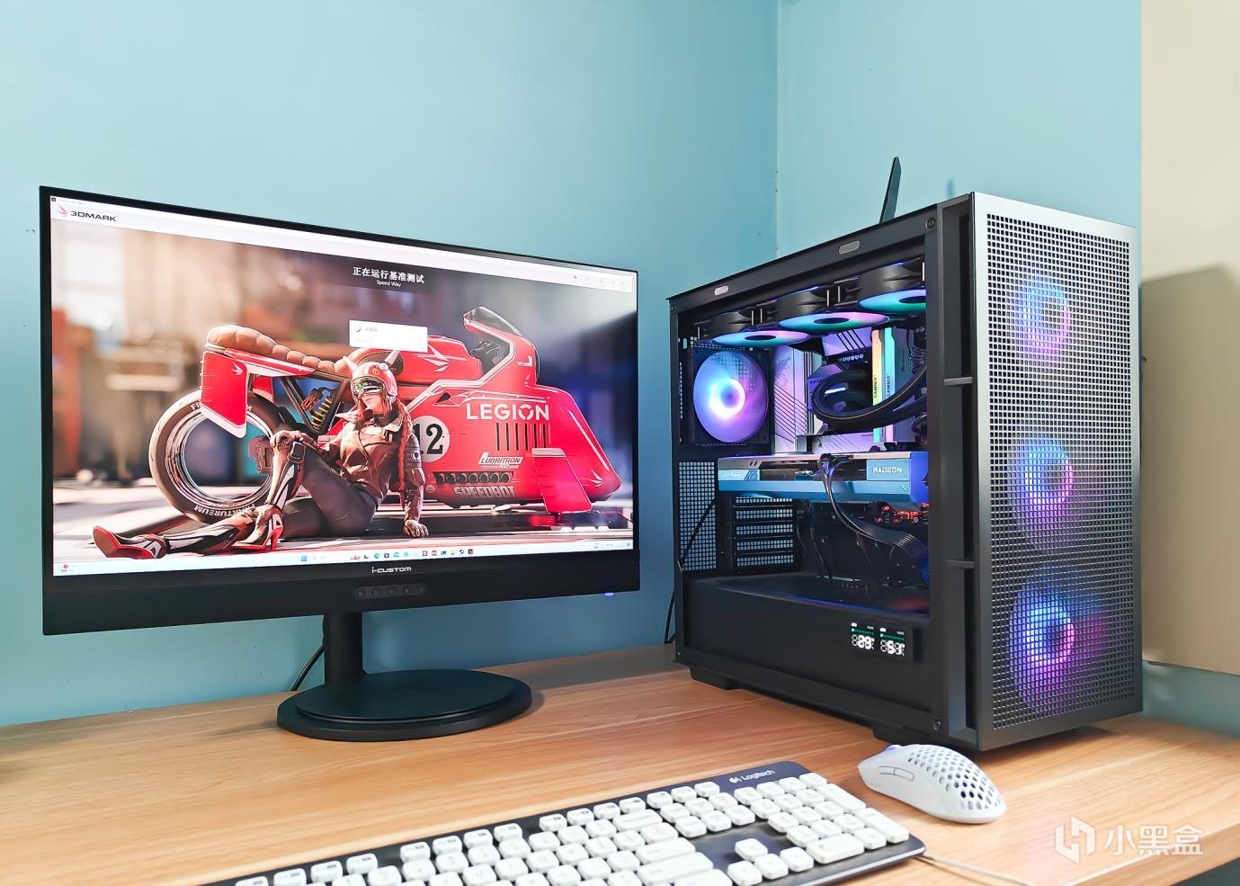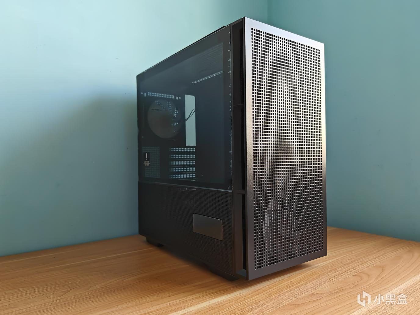 机箱是九州风神的机箱CH560数显版,机箱很宽大威猛。 前脸是流行的网孔面板,侧透大部分是玻璃,可以看见机箱内部,下面小部分是网孔面板,可以实现更好的进风新风。