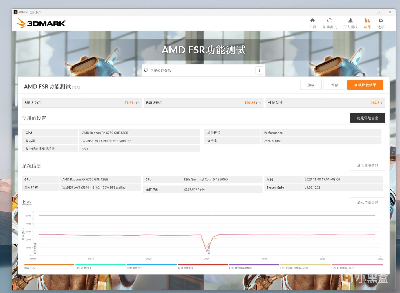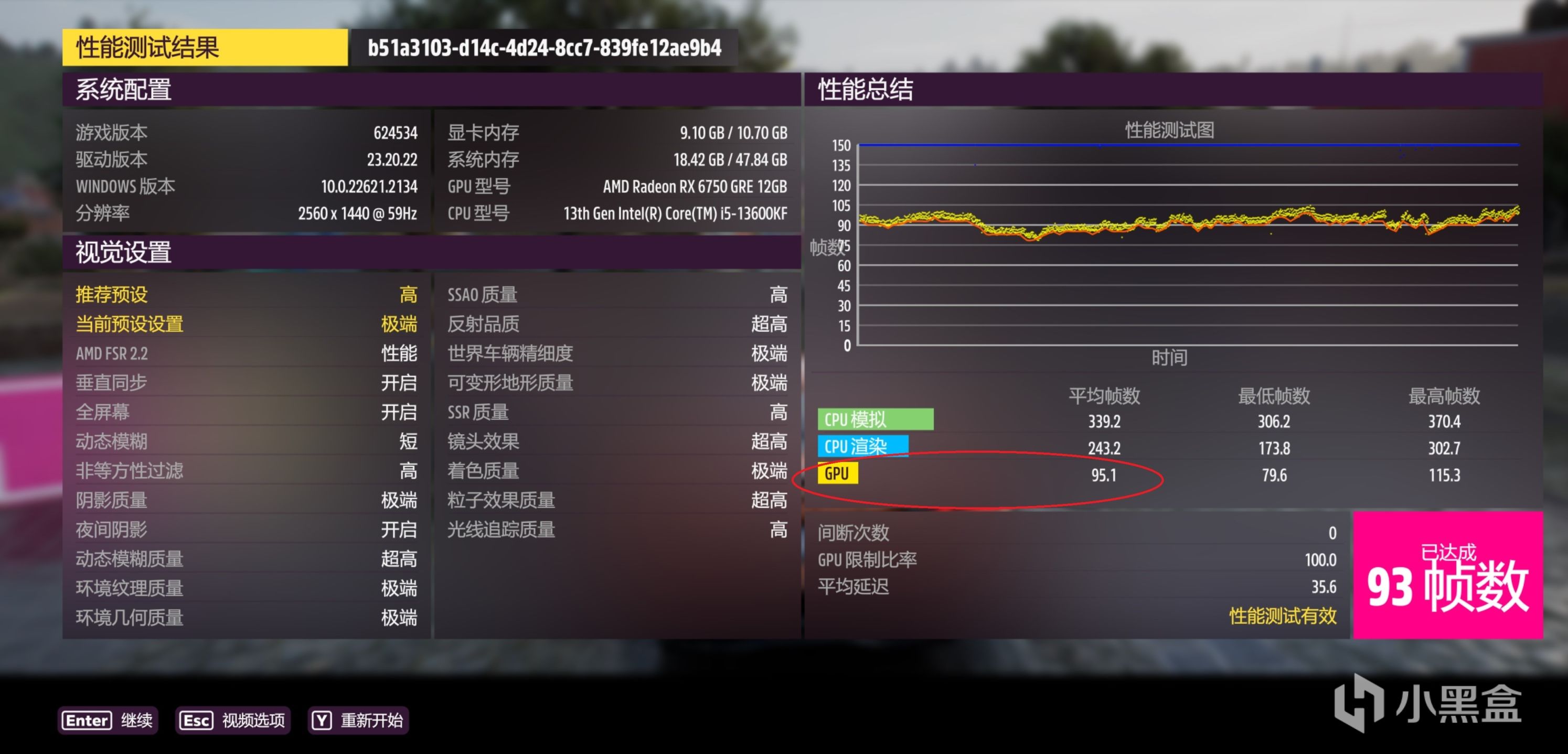 最后是开启FSR 2.2模式性能模式,GPU帧数是平均95.1分。