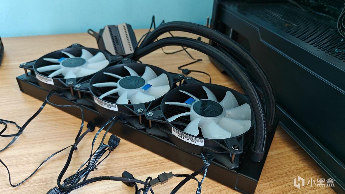 散热器选择了360水冷,是微星的MAG CORELIQUID M360,这是款一体水冷,水管长度有400mm,这样在大型机箱内安装的时候就不会有不够长的问题了。惯例使用了三个120mm冷排风扇,风扇是FDB轴承,低噪音,振动小。风扇的转速在600-2200RPM,风速25.5-94.65CFM,风压3.68mm水柱,还是挺不错的,而且还 支持ARGB彩光灯效。
