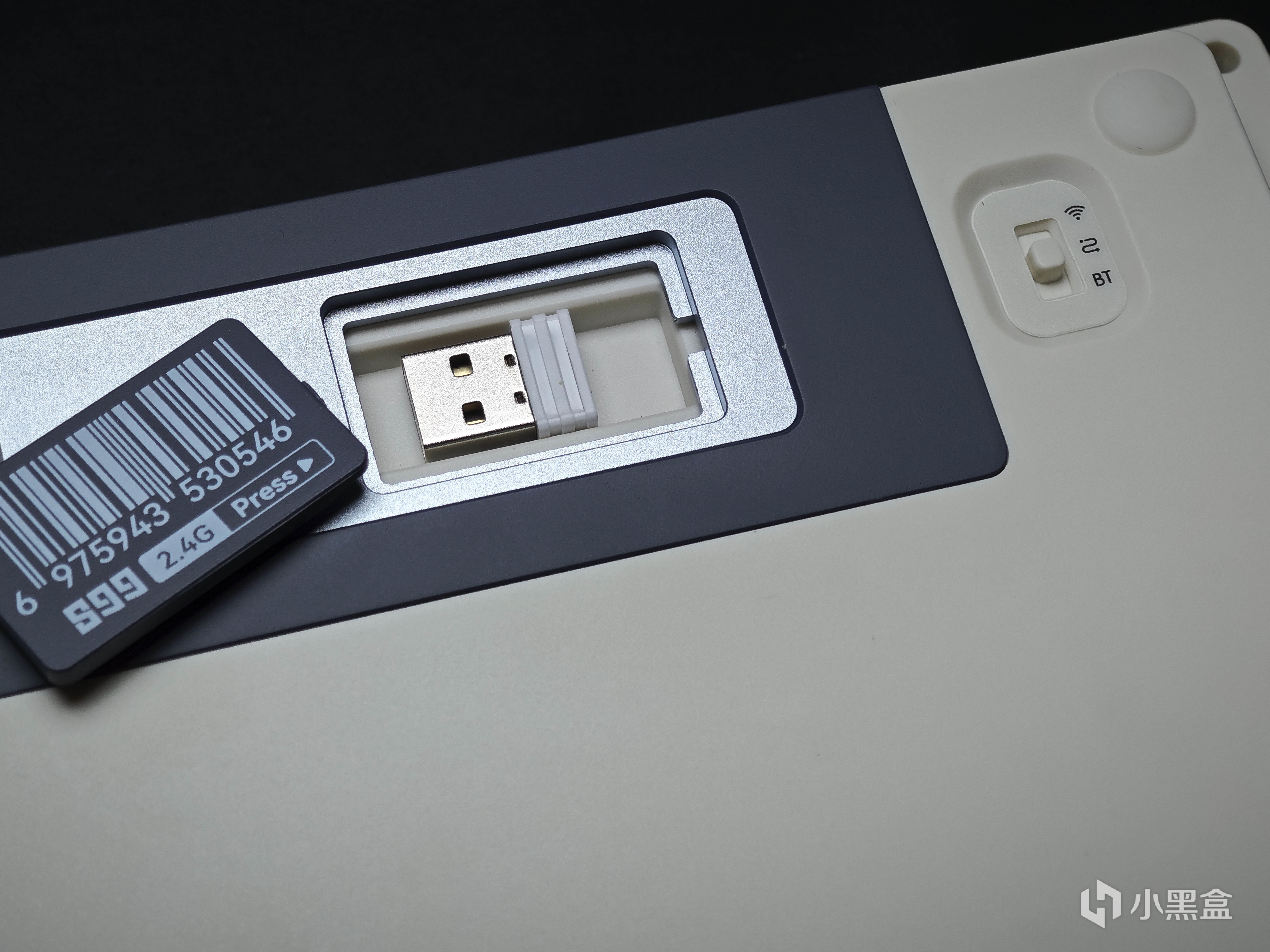 背板偏右側的位置是接收器收納倉,採用磁吸設計,試了一下即使大力晃動也不會掉出來,再右邊一點就是模式切換開關,放在下邊的便捷性相較於側邊以及正面來說確實不太好,但是這個模具想必瞭解過的都知道,是之前CL98的模具,雖說小改了一點但整體是已經固定了,沒辦法大改。