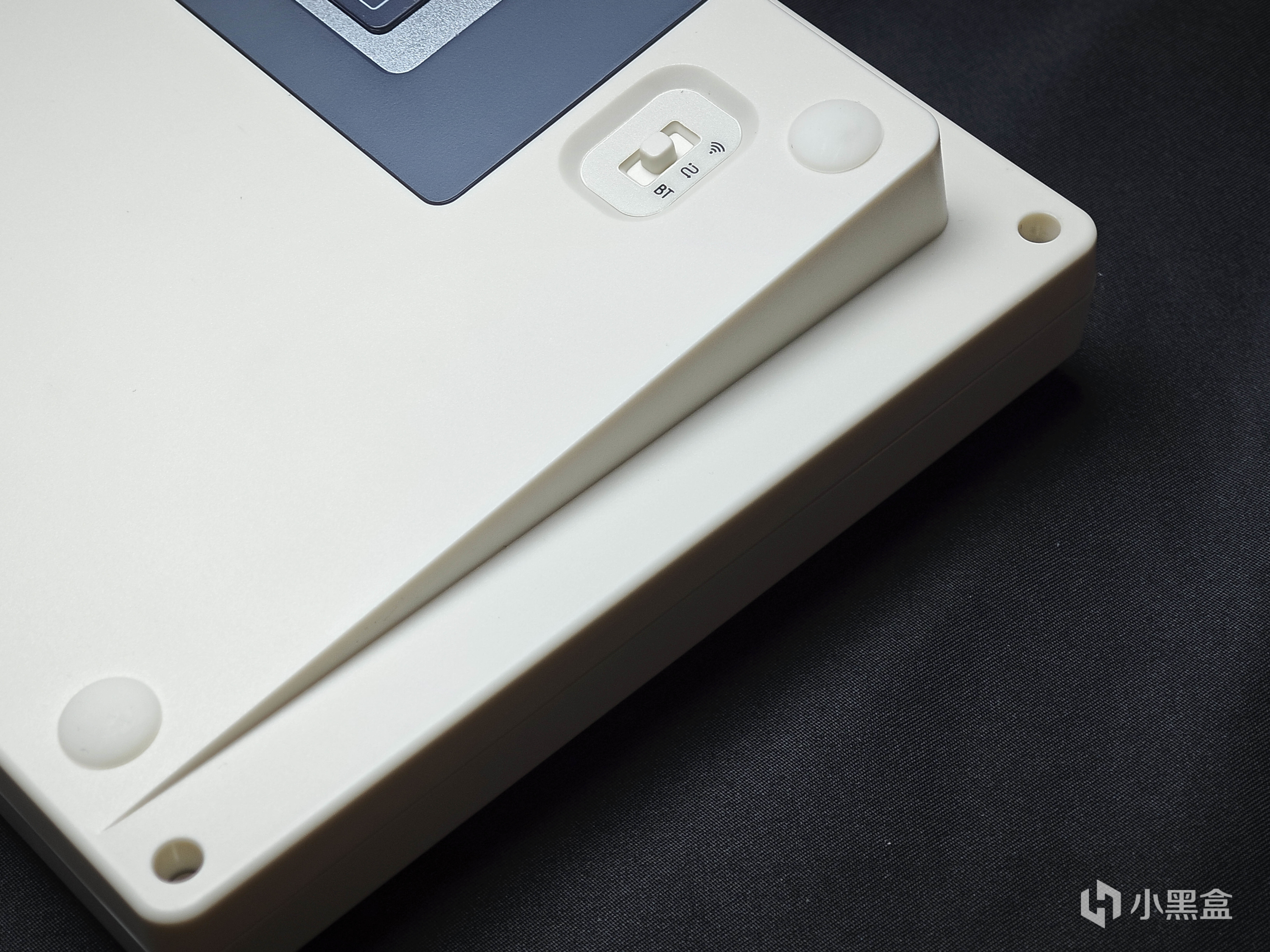 兩側能看到底殼上有做一個很大傾斜角度的設計,一定程度上減少了鍵盤沒有腳撐的缺點。