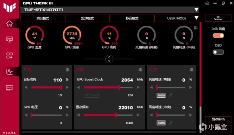 显卡超频用的是华硕官网找的官方超频软件“GPU Tweak 3”,这里我也奉上我自己的数据(还是比较保守的)。