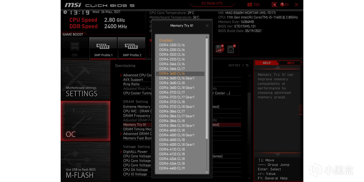 内存方面,毕竟我都上了微星的Z板,肯定没任何理由再用DDR4的内存,这里直接选用口碑最好的海力士ADIE颗粒的内存。且微星主板有个比XMP更无脑的“memory try it”的功能,一步到位超频到最佳状态。