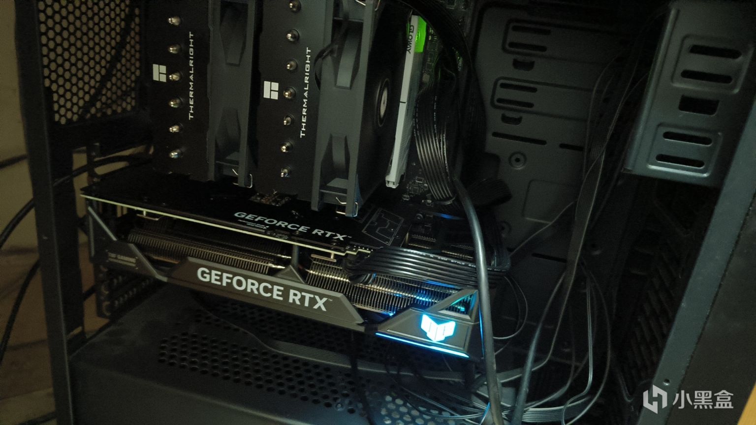 显卡方面,本来只打算等个4000元以下的4070的,结果11月1号那天晚上突然看到比价APP上弹出了优惠,还顺手抢到了,就直接上了这个偏高端的华硕TUF 4070ti。不得不说华硕的牌面给得还是很足,还送了显卡支撑柱以及感谢信纪念品等等(不过我都没用直接扔回盒子里了)。