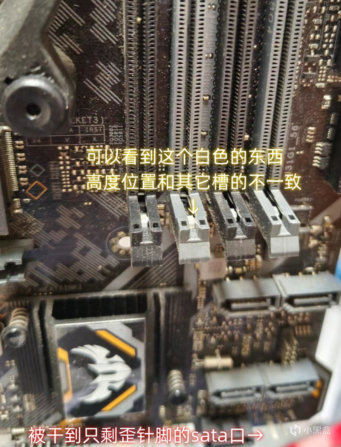 6.拔坏显卡插槽卡扣、拔坏主板其中一个sata插口,甚至是干坏一个内存插槽等(这个我现在都不知道什么时候弄坏的,只知道某次拔了内存后就再也插不进了).....