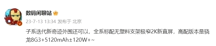 ◇ 电池容量:5120mAh,支持120瓦快充;