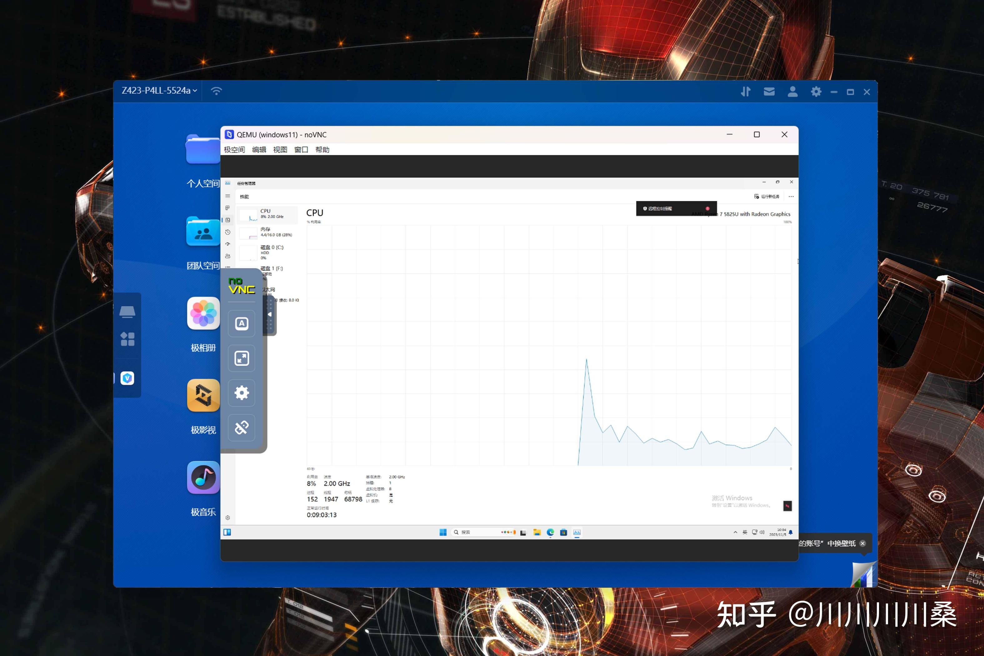 相比上面两种Windows常见的远控,Linux内核NAS系统的内置远控工具一般以noVNC为主,用过的朋友都知道,网络质量再好的环境,远控时的帧数也上不去,说人话就是不流畅。