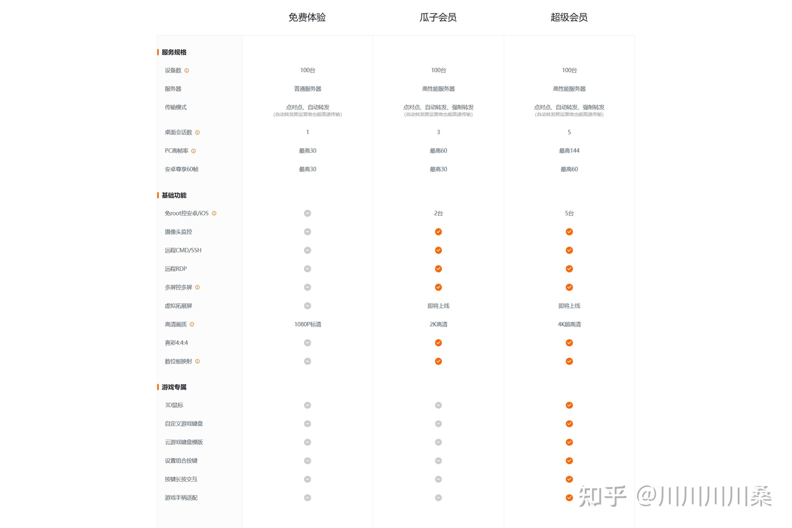 ● 第一档是瓜子会员,比较适合企业用户,比较实用的是可以同时控制三台设备和CMD/SSH登录,同时也支持控制摄像头和多屏2K分辨率显示。