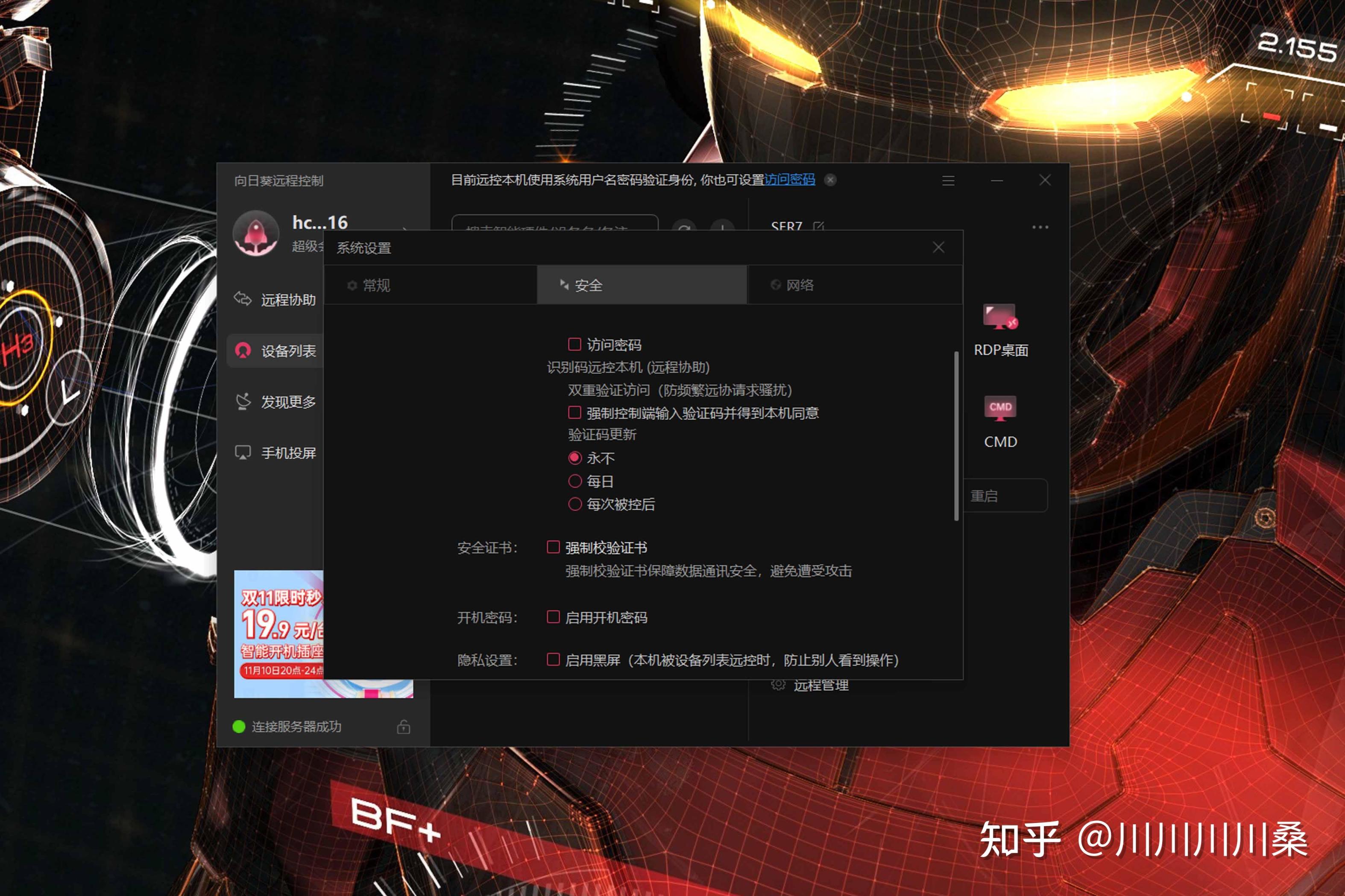 第三,我的测试设备比较多,考虑到本地拓扑的传输速率并没有在网关上做防护,向日葵的安全机制做的不错,免费版本就有二级验证和强制校验证书,对终端设备能不错的防护。
