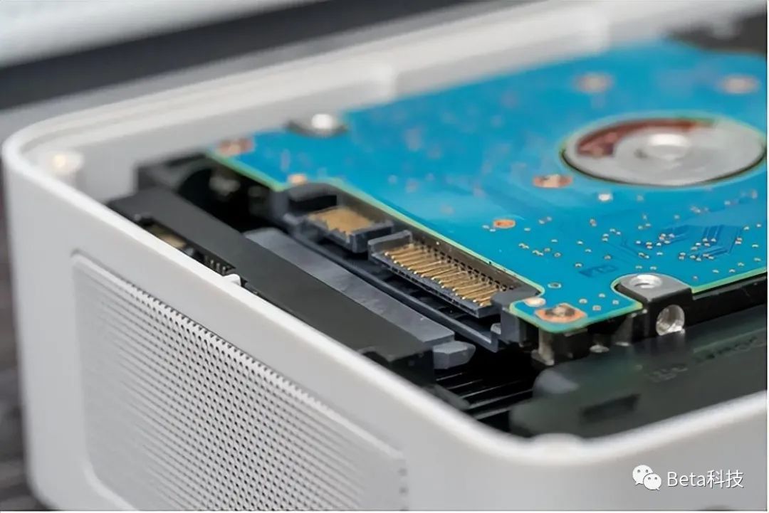 硬盘仓支持7mm以内的2.5寸硬盘,这点需要特别注意一下。上图里是一块9mm的笔记本硬盘,和硬盘仓里的接口高度上有落差,没办法安装这种比较厚的硬盘。